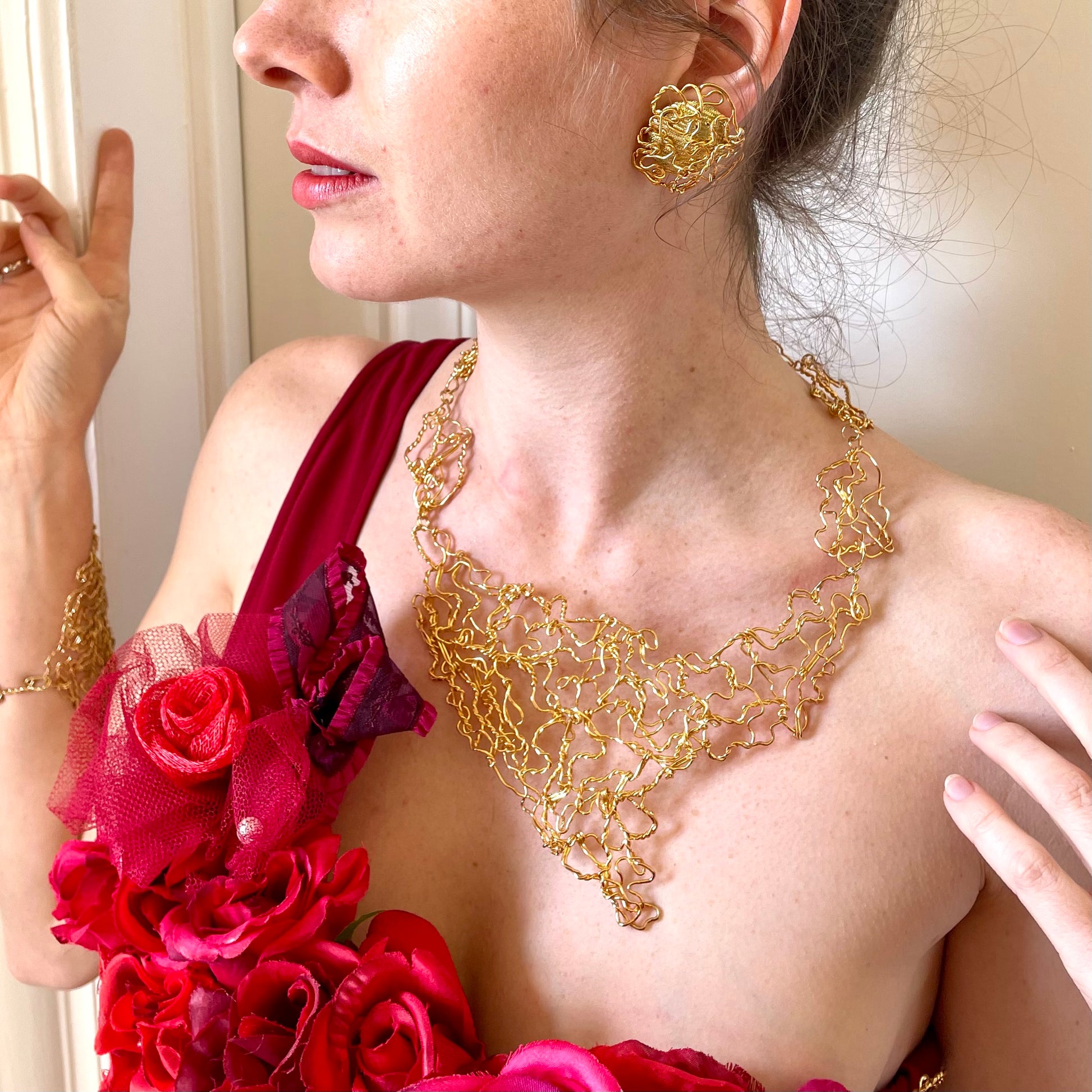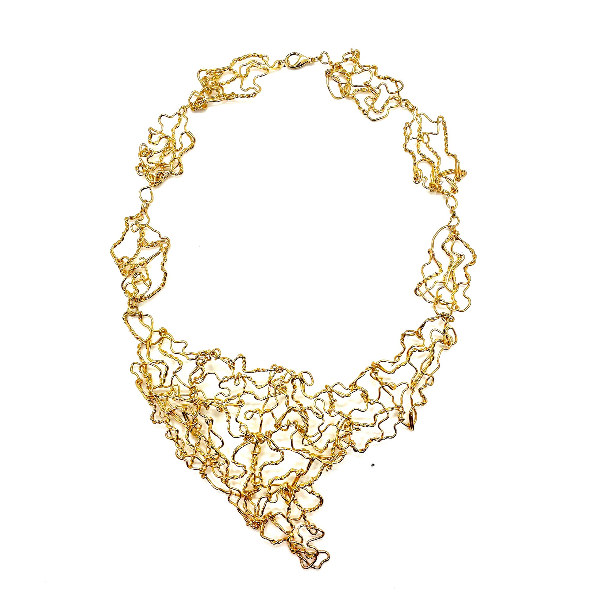 Von Hand gefertigte Brustkette aus 18 Champagner-Muselets, vergoldet mit 24-karätigem Feingold.