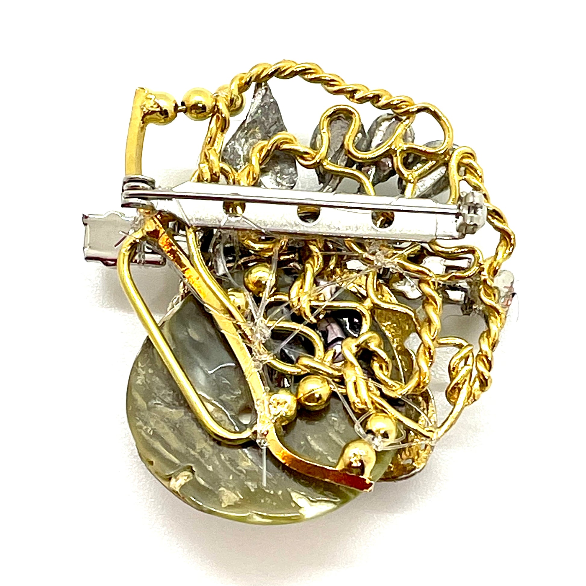 La broche SCARABO qui mesure 5,5cm sur 5cm de large se compose de plusieurs éléments cousues main