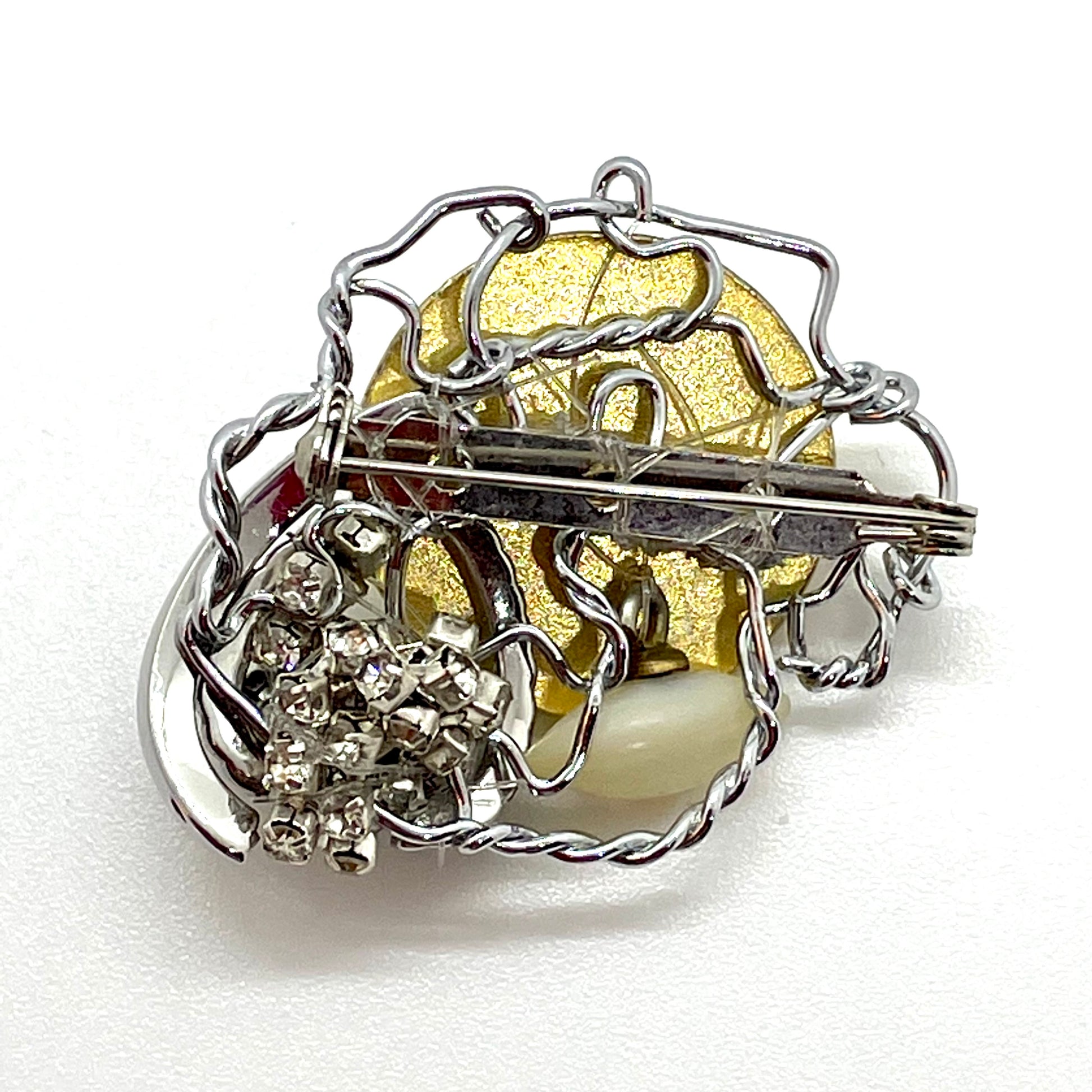 La broche VERSAGO de 5cm de longueur sur 4cm de large se compose d'un bouton en métal style haute couture avec une pièce chromée.