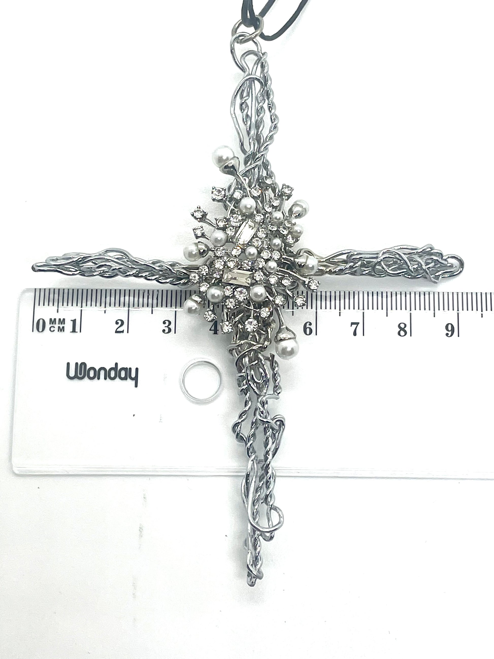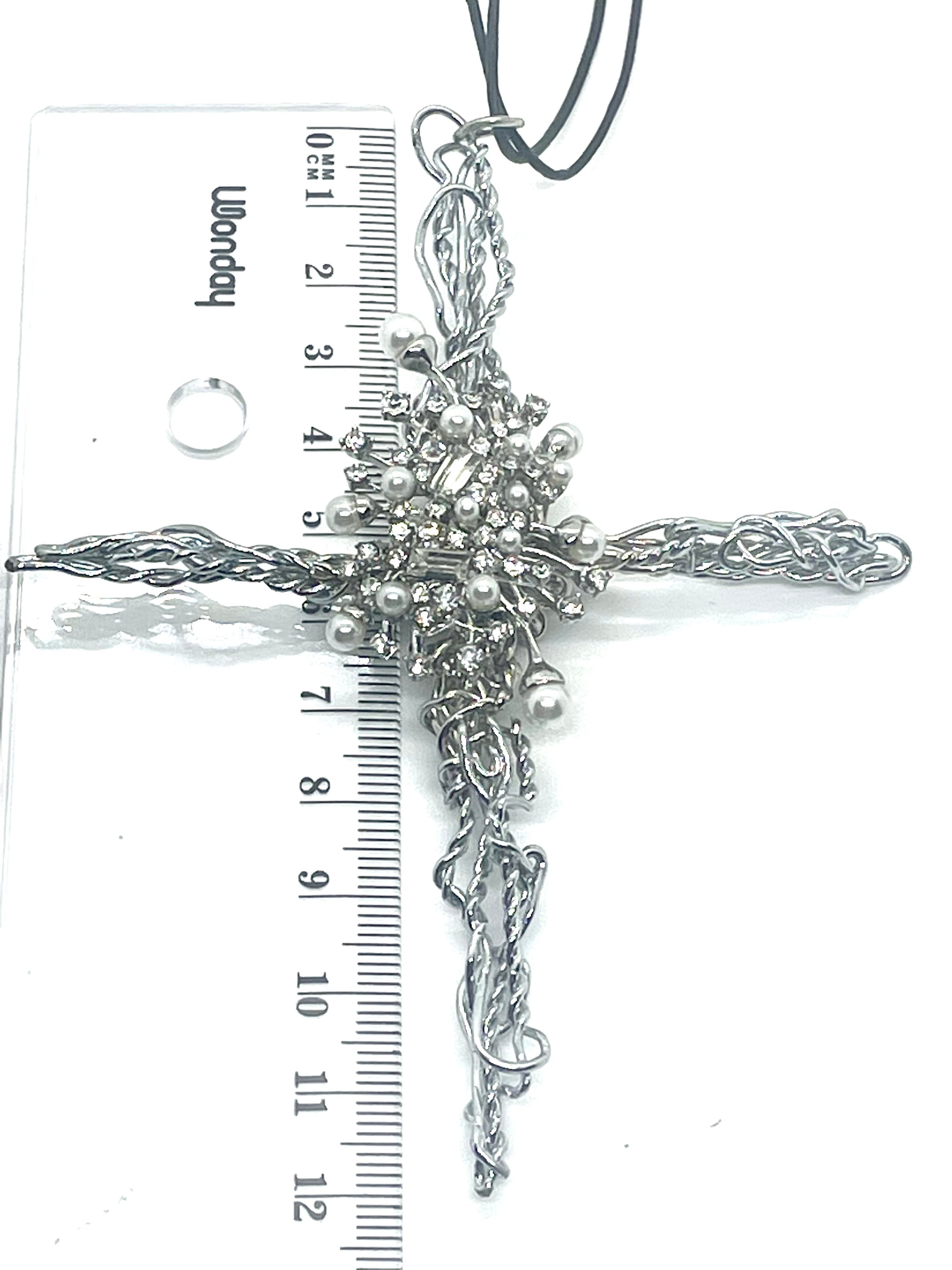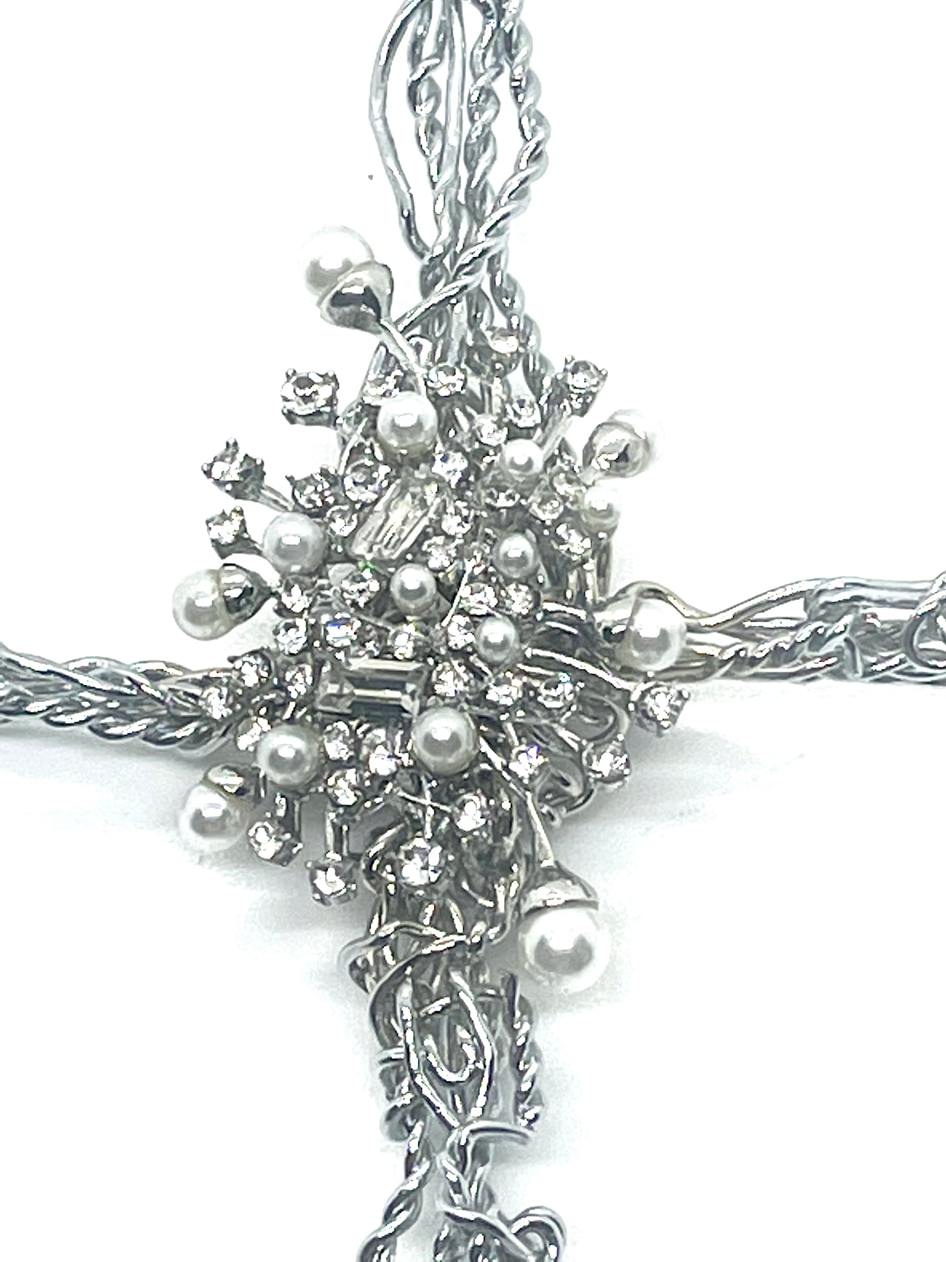Le collier MAHASIAH est en muselet de champagne chromé avec des cristaux blancs et perles synthétiques.