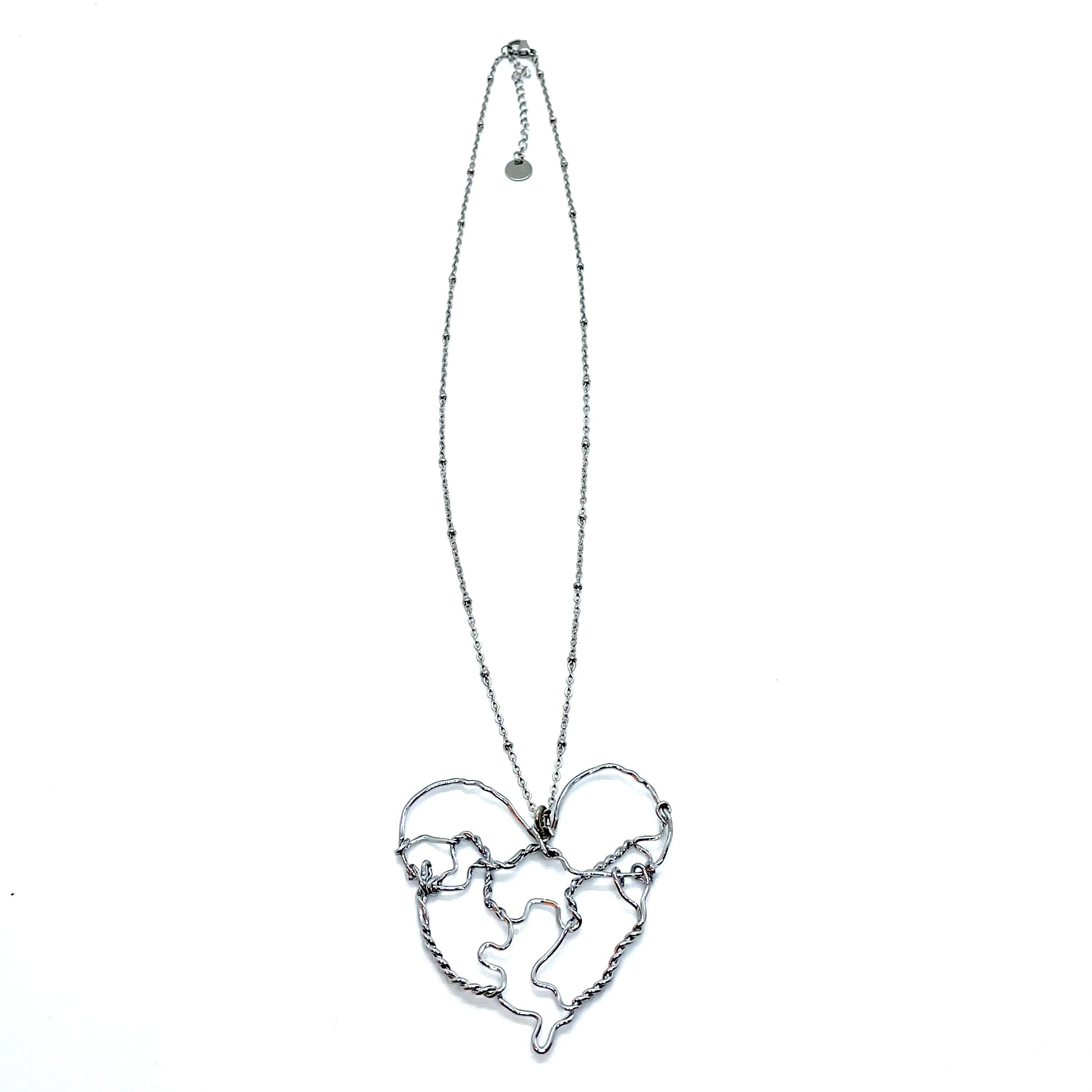 Le collier pendentif long PASCALINE est un coeur créé à la main avec un muselet de champagne chromé par électrolyse.