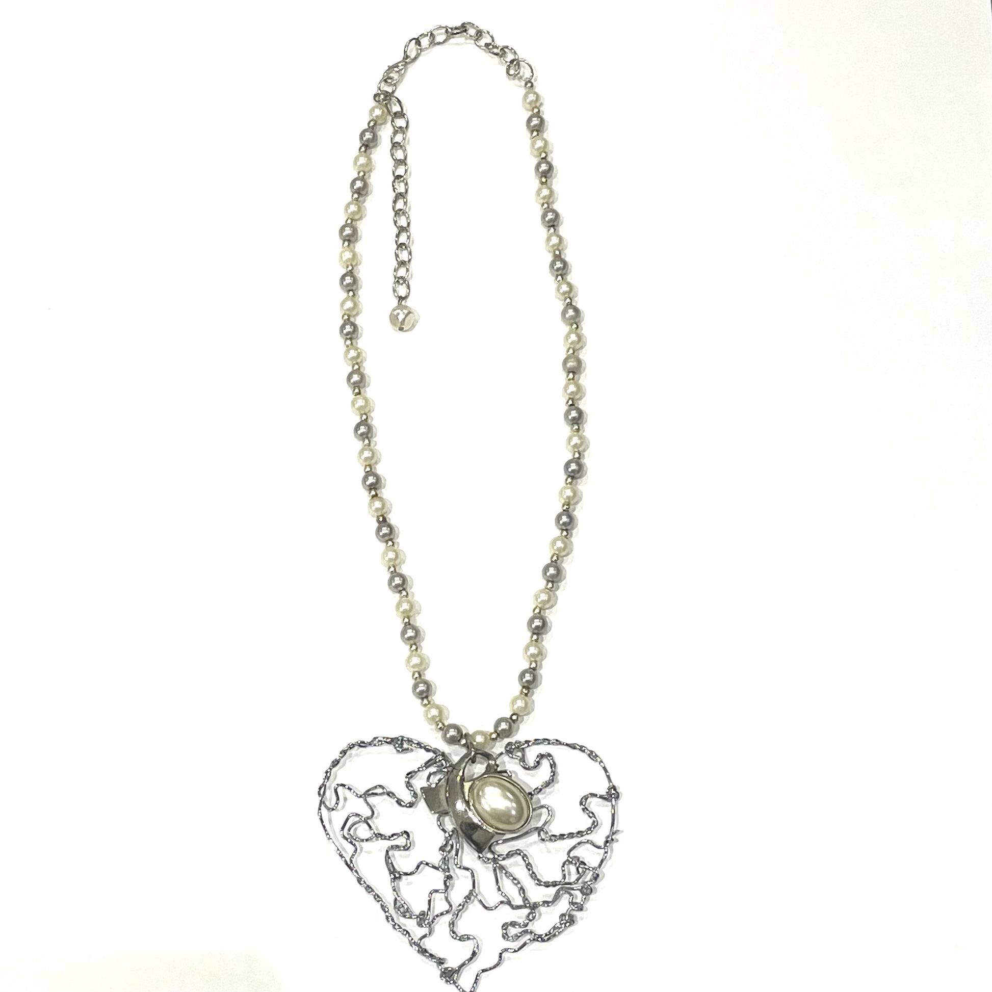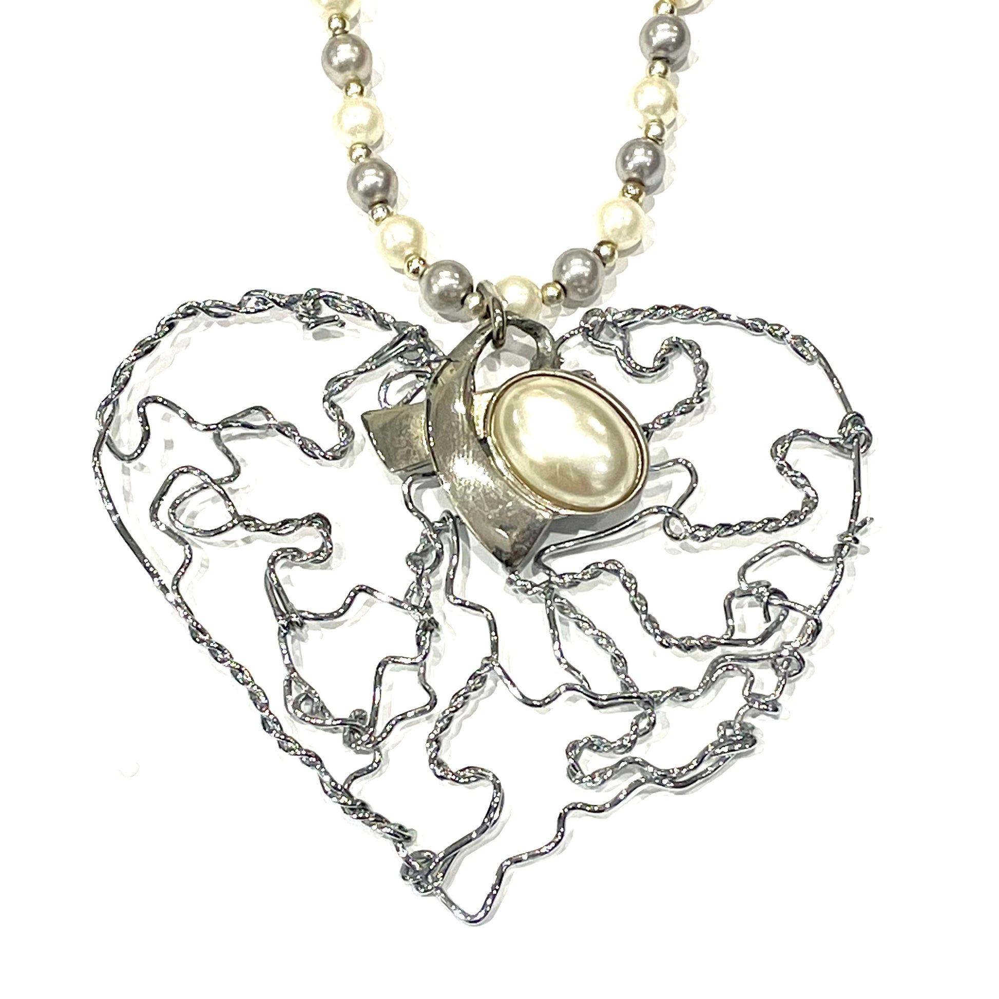 Le collier pendentif PERLINE est un coeur réalisé à la main avec des muselets de champagne chromé par électrolyse.