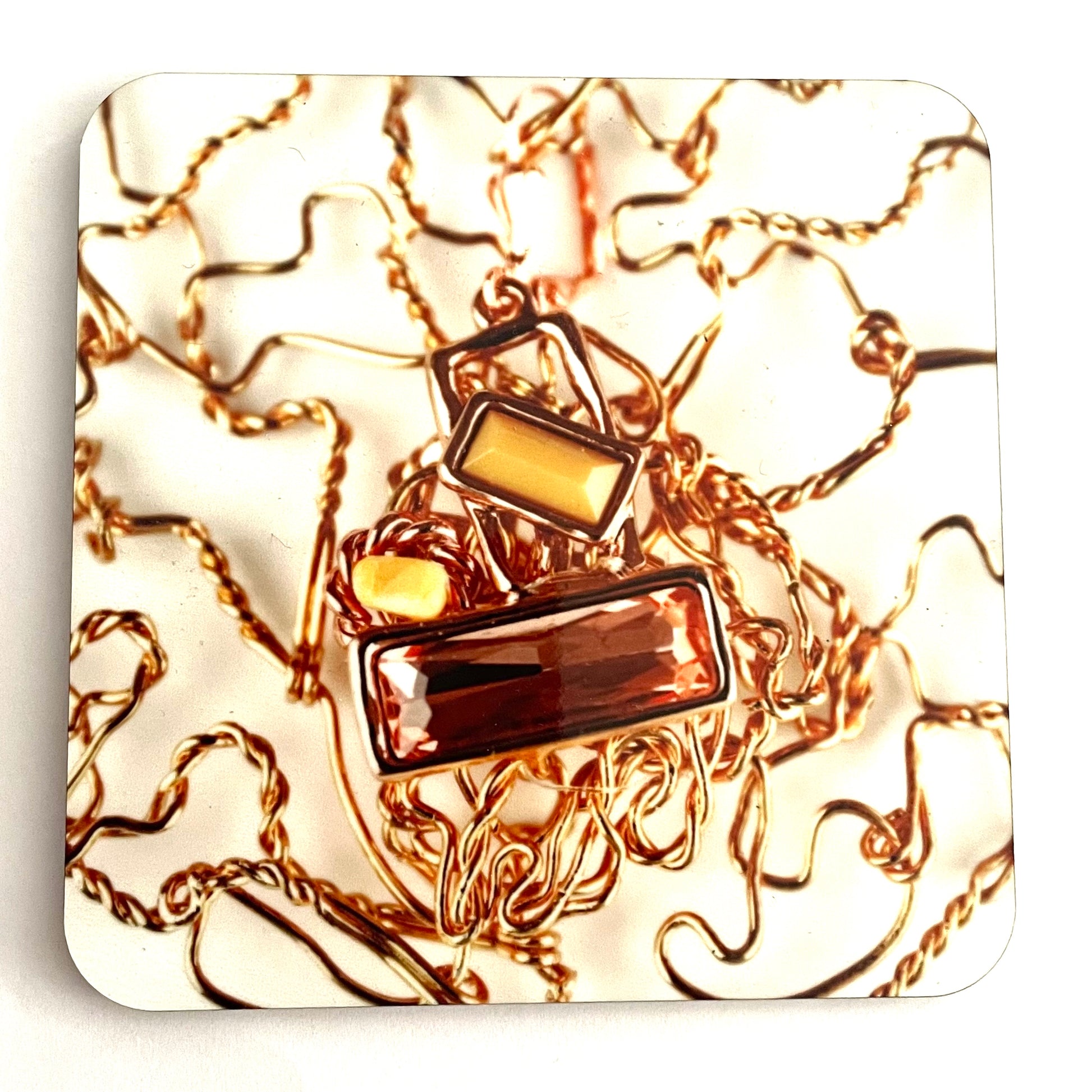 Objets décoratifs tels de petits tableaux de 10 x 10 cm ultra brillant de 2 mm d'épaisseur avec un liège anti-dérapant sur le verso .