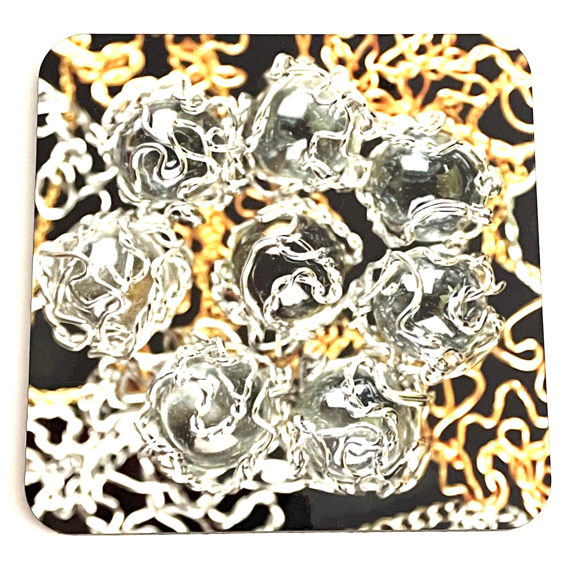 Le modèle BUDAPEST fait partie de la collection des dessous de verres APÉRO QUIZ et présente la collection CHAMP: une série de photos d'art des bijoux de champagne de Corinne Reinsch prises par la photographe Amandine Andre Pfauto.