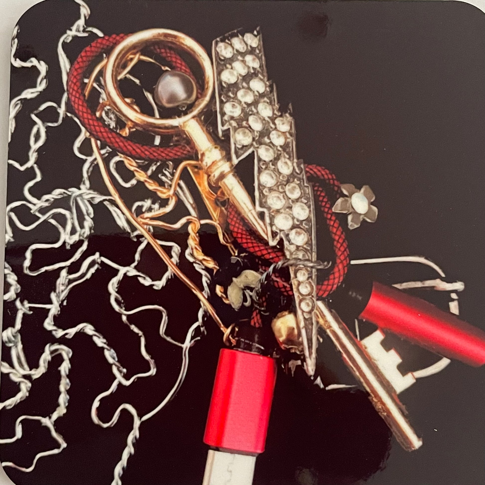 Le modèle NEW YORK fait partie de la collection des sous verres APÉRO QUIZ avec la collection CHAMP: une série de photos d'art des bijoux de champagne de Corinne Reinsch prises par la photographe Amandine Andre Pfauto .